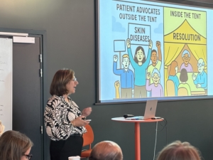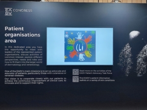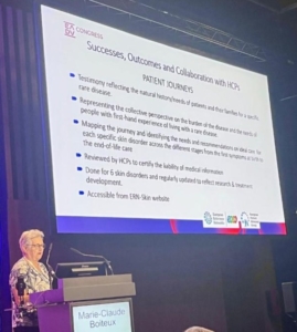 Besides the possibility to have a booth increase the visibility of Cutis Laxa, Marie-Claude Boiteux spoke about the successes and projects led by the Patient Representatives (ePAGS) during the session dedicated to the work done in ERN-Skin.